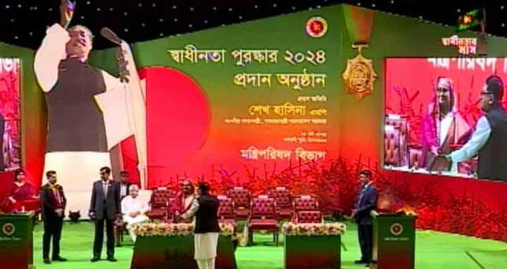 জাতীয় পর্যায়ে গৌরবোজ্জ্বল ও কৃতিত্বপূর্ণ অবদানের স্বীকৃতিস্বরূপ ১০ বিশিষ্ট ব্যক্তি পেলেন ‘স্বাধীনতা পুরস্কার ২০২৪’। সোমবার (২৫ মার্চ) সকালে রাজধানীর ওসমানী স্মৃতি মিলনায়তনে এ পুরস্কার বিতরণ করা হয়। অনুষ্ঠানে প্রধানমন্ত্রী শেখ হাসিনার হাত থেকে পদকপ্রাপ্ত ব্যক্তি বা তার প্রতিনিধিরা এ পুরস্কার গ্রহণ করেন।