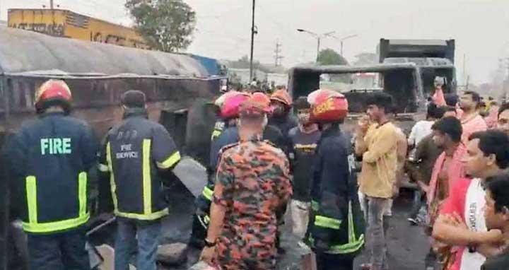 মঙ্গলবার (২ এপ্রিল) ভোর ৫টা ৩৮ মিনিটে ঢাকা-আরিচা মহাসড়কের হেমায়েতপুরের জোরপুল এলাকায় এ ঘটনা ঘটে। খবর পেয়ে সাভার ফায়ার সার্ভিসের ৩টি গাড়ি চেষ্টা চালিয়ে সকাল ৭টার দিকে আগুন নিয়ন্ত্রণে আনে।
