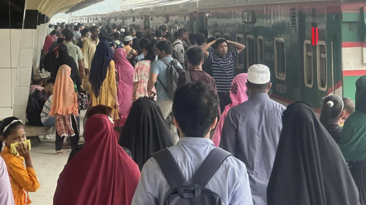 ঈদযাত্রার পঞ্চম দিন : কমলাপুরে বেড়েছে ঘরমুখো মানুষের ভিড়