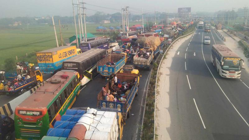 ঢাকা-টাঙ্গাইল মহাসড়কে ২৫ কিলোমিটার এলাকাজুড়ে যানজট
