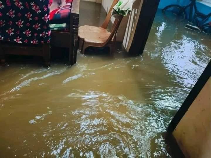 ভারতের ঢলে সিলেটের চার উপজেলায় বন্যাছবিটি জৈন্তাপুর উপজেলার ৩নং চারিকাটা ইউনিয়নের বনপাড়া-রামপ্রসাদ সড়কের।