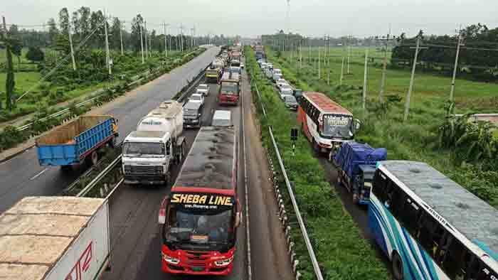 ঢাকা-টাঙ্গাইল-বঙ্গবন্ধু সেতু মহাসড়কে ৩০ কিলোমিটার যানজট