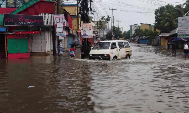 কাজির পয়েন্টের ব্যবসায়ী মো. রাজু আহমদ বলেন, ‘রাতে এত বৃষ্টি হয়েছে সকাল থেকে নদীর পানি বেড়ে কাজির পয়েন্টের সড়ক ডুবিয়ে দিয়েছে। দোকানের সব মালামাল ভিজে যাচ্ছে। ভোর থেকে মালামাল সরানোর কাজ করছি।’