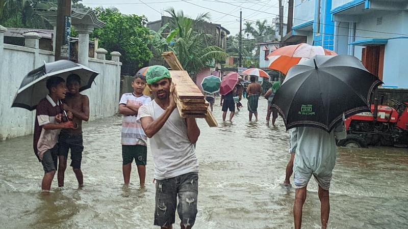 মঙ্গলবার (১৮ জুন) ভোর রাত থেকে সুনামগঞ্জে ভারী বর্ষণ ও পাহাড়ি ঢলের ফলে শহরে ফের পানি প্রবেশ করতে শুরু করেছে। সুনামগঞ্জ শহরের বিভিন্ন এলাকায় পানি প্রবেশ করতে শুরু করায় অনেকেই আশ্রয় নিয়েছে বিভিন্ন আশ্রয়কেন্দ্রে।