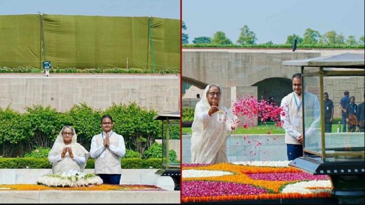 শেখ হাসিনা ভারতের মহান এই নেতার প্রতি শ্রদ্ধা জানাতে সেখানে কিছুক্ষণ নীরবে দাঁড়িয়ে থাকেন। তিনি সমাধির উপর ফুলের পাপড়ি ছড়িয়ে দেন এবং দর্শনার্থী বইয়ে সই করেন।