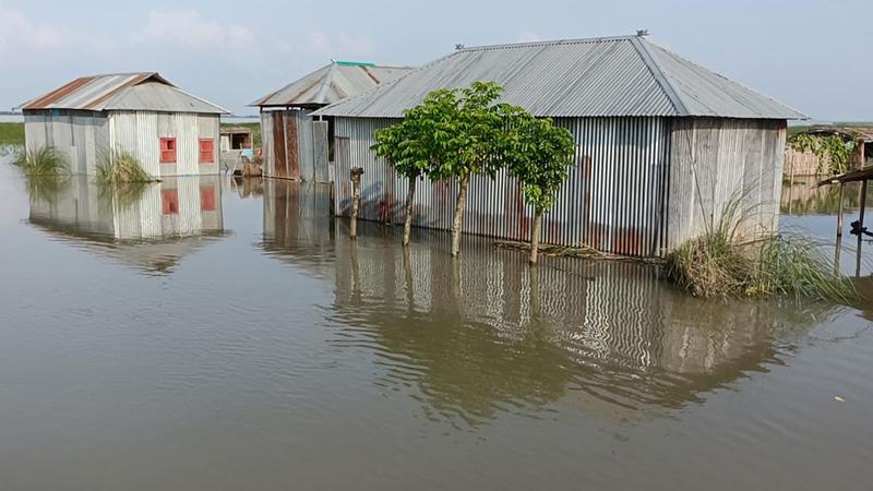 টানা বৃষ্টি ও উজান থেকে নেমে আসা ঢলে কুড়িগ্রামের ধরলা ও ব্রহ্মপুত্র নদের পানি বেড়ে বিপৎসীমার ওপর দিয়ে প্রবাহিত হচ্ছে। পানি দ্রুত বৃদ্ধির কারণে ব্রহ্মপুত্র ও ধরলা অববাহিকার নিচু এলাকার প্রায় ৮০টি চর-দ্বীপচরে পানি ঢুকেছে। তলিয়ে গেছে কিছু ঘরবাড়ি ও সবজির খেত।