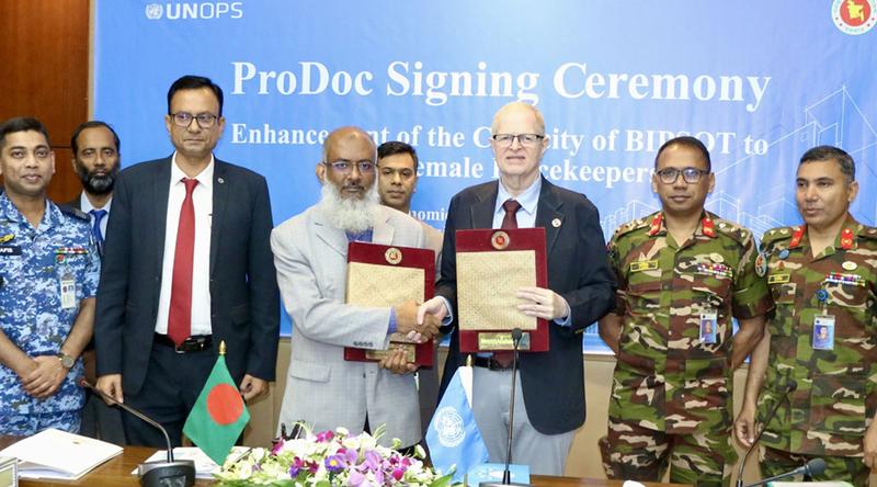 নারী শান্তিরক্ষীদের প্রশিক্ষণের জন্য ১০ লাখ ডলারের চুক্তি হয়েছে। তাদের প্রশিক্ষণের জন্য বাংলাদেশ ইনস্টিটিউট অব পিস সাপোর্ট অপারেশন ট্রেনিংয়ের সক্ষমতা বৃদ্ধির প্রকল্প দলিলে স্বাক্ষর করেছে বাংলাদেশ সরকার ও ইউনাইটেড নেশনস অফিস ফর প্রজেক্ট সার্ভিসেস।