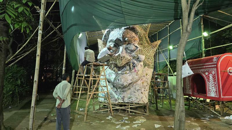 আজ (শনিবার) বেলা সাড়ে ১১টায় চারুকলার ভেতরে গিয়ে দেখা যায়— শামিয়ানা টানানো একটি স্থানে পহেলা বৈশাখের উৎসবকে কেন্দ্র করে বিভিন্ন ধরনের আকৃতি তৈরি করা হচ্ছে। সেখানে ফ্যাসিস্টের যে প্রতিকৃতি রাখা ছিল সেটি আগুনে সম্পূর্ণ পুড়ে গেছে। এ ছাড়া শান্তির প্রতীক পায়রাটিও আগুনের ব্যাপকভাবে ক্ষতিগ্রস্ত হয়েছে। এ ছাড়া বাঘ আকৃতির প্রতিকৃতিটির লেজ আগুনে ক্ষতিগ্রস্ত হয়েছে।