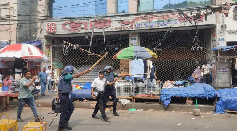 সরেজমিনে দেখা গেছে, কলেজের পার্শ্ববর্তী গলি থেকে উচ্চ মাধ্যমিক শ্রেণির সংঘর্ষের সময় আহত এক ছাত্রকে সঙ্গে নিয়ে বের হন শিক্ষার্থীরা। পরে তারা বিচার চাই স্লোগান দিয়ে সিটি কলেজের দিকে এগিয়ে যেতে চাইলে টিচার্স ট্রেনিং কলেজের সামনে দাঁড়িয়ে থাকা নিউমার্কেট থানা পুলিশ বাধা দেয়। এসময় শিক্ষার্থীরা বাধা পেরিয়ে সামনের দিকে এগিয়ে যেতে চাইলে পুলিশ ধাওয়া দিয়ে ছত্রভঙ্গ করে দেয়। পরে ঢাকা কলেজের ভেতর থেকে শিক্ষকরাও বেরিয়ে এসে শিক্ষার্থীদের ক্যাম্পাসে ফিরিয়ে নিয়ে যান।