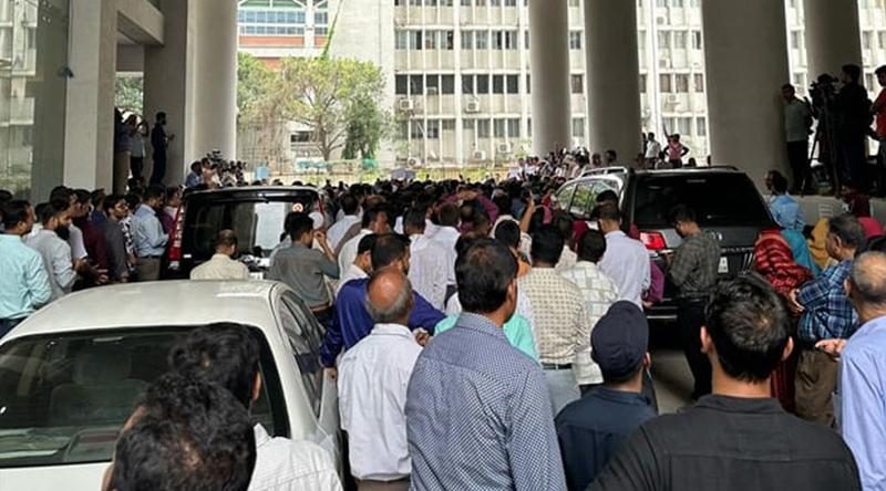 কর্মকর্তা-কর্মচারীর অবস্থানে সচিবালয়ের এক নম্বর গেট দিয়ে যান চলাচল বন্ধ হয়ে যায়।